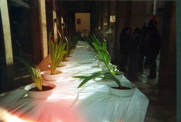 All’interno di ognuna delle 60 ciotole cresce un verde germoglio.