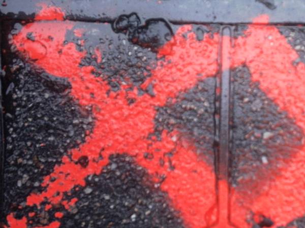 E RUGGINE E INTERVENTO DELL’ARTISTA CON COLORE ROSSO Foto