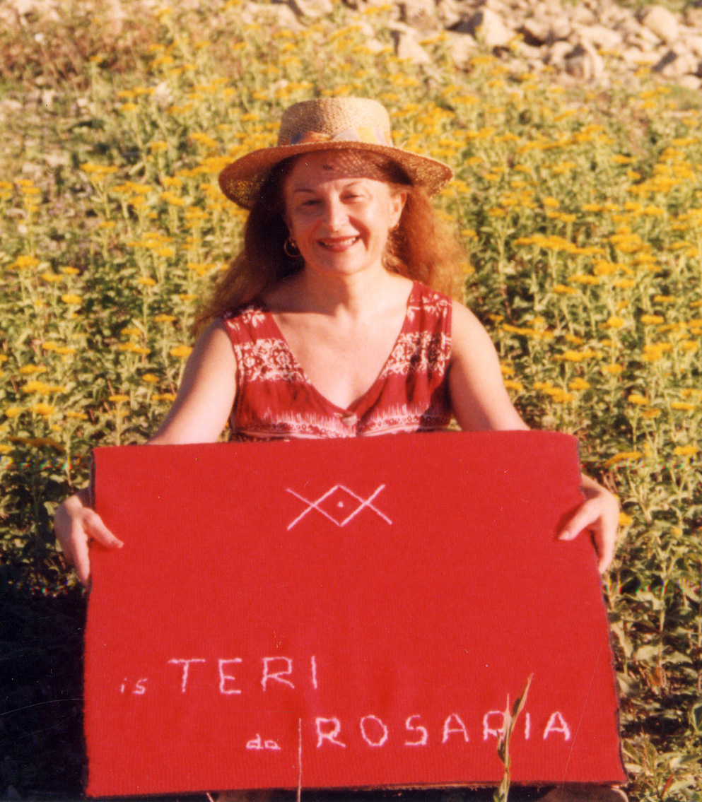 Per aderire al progetto: è sufficiente realizzare ed inviarmi un quadro di cm. 60x60; “tessuto” nella tecnica che preferisci: a magia, all’uncinetto, a telaio, a punto a croce, a intreccio… Possibilmente in lana o misto lana, un bel rosso rubino, rosso-vino, rosso sangue. Sotto-scritto-con ago e filo bianco – il tuo nome e quello della tua mamma o il tuo nome e quello che ti ha allevato. Perché questo quadrato? Desidero formare, unendolo al mio – realizzato all’uncinetto, a punto basso, semplicissimo – una lunga striscia rossa – simile al NASTRO ROSSO con cui ho già ideato il mio viaggio simbolico La Danza della Corda – però FATTA A MANO La manifattura e l’invio di ogni quadrato sarà un segno di grande valore reale simbolico, una testimonianza più forte della voce e dello scritto, un simbolo di amicizia, un’attestazione di consenso e di incoraggiamento a quanto, da Artista e da donna, sto compiendo. Una volta completati e inviati, i quadrati potranno essere messi in mostra: non ha importanza la loro perfezione estetica, quanto l’Azione stessa del realizzarli; chi lo desidera, potrà creare qualcosa di originale, personalizzando il proprio. Le pezzotte, potranno in seguito essere utilizzate per le diverse Performance7Installazioni, con la presenza attiva di tutti(e) coloro che li hanno “fabbricati”. Tutto questo è arte pubblica, arte coinvolgente, in cui l’Artista catalizza le silenti energie creative nascoste in ognuno di noi. Spero di ricevere la tua adesione a questo mio progetto Attenzione: Se non sai o non puoi tessere a mano il quadrato di 60x60, potrai realizzarlo anche in maniera alternativa, con un pezzo di stoffa della stessa misura, ma sempre “scrivendoci” con ago e filo il tuo nome e quello della tua mamma o di chi ti ha allevato: il mio, ad esempio, è: Teri da Rosaria. A parte, se lo desideri, puoi scrivere su un cartoncino 5x10 cm. I tuoi dati, da mettere sotto il quadrato durante la mostra collettiva. T i ringrazio fin d’ora e ti abbraccio, certa di una tua positiva risposta.
