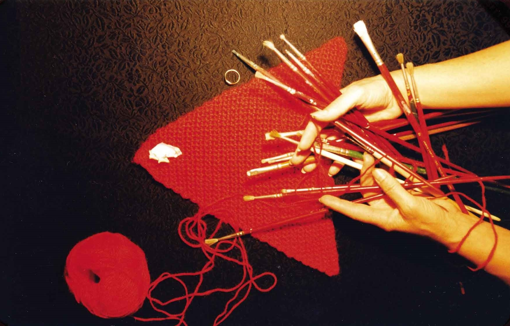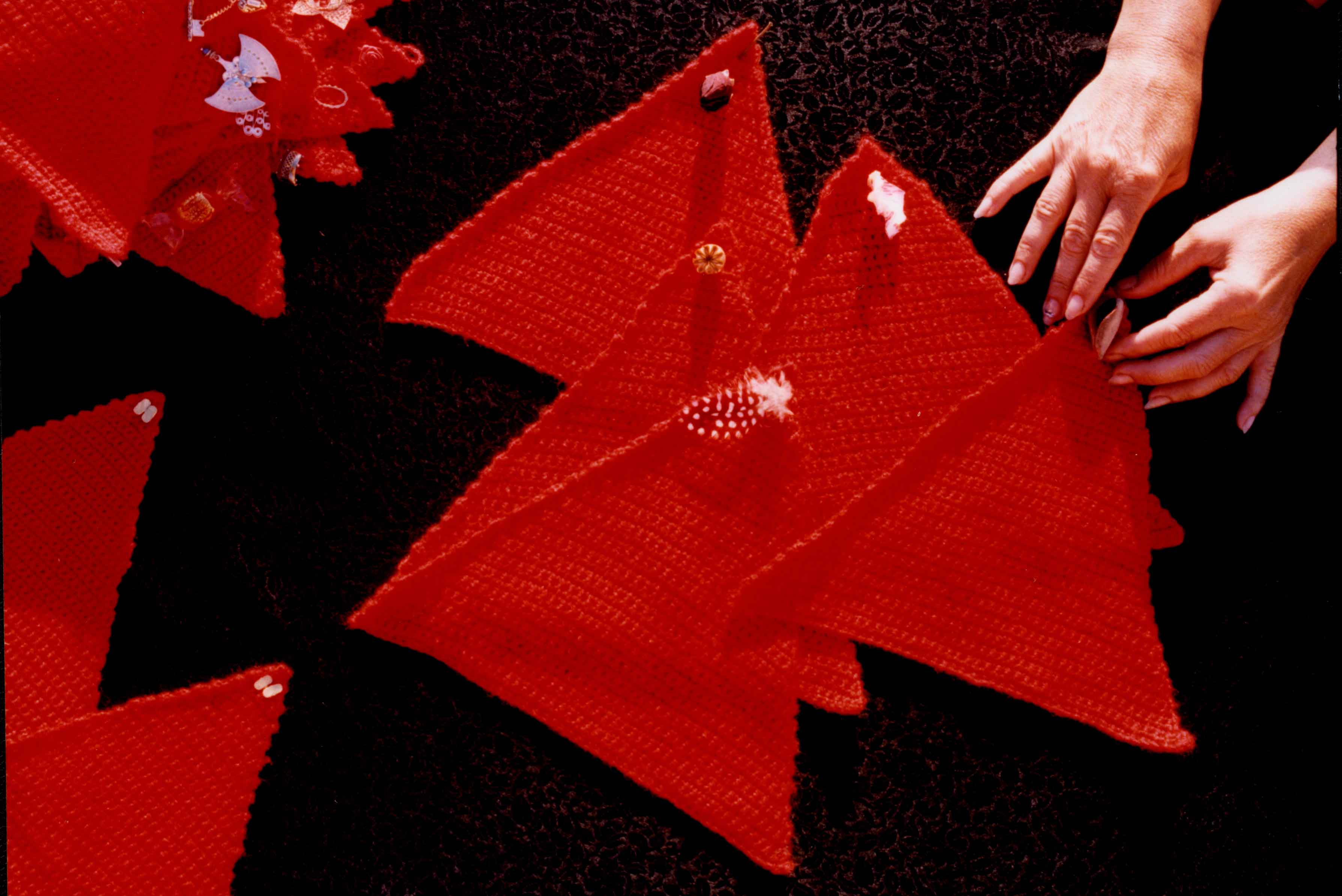 I quadrati tessili prevedevano infatti: la realizzazione e l’invio all’artista di un quadrato di cm. 60 x 60; “tessuto” nella tecnica preferita maglia, uncinetto, telaio, punto croce, intreccio, e così via Possibilmente in lana o misto lana, di colore rosso, un bel rosso rubino, rosso vino, rosso sangue. Sotto-scritto - con ago e filo bianco - il proprio nome e quello della madreo della persona che ci ha allevato …