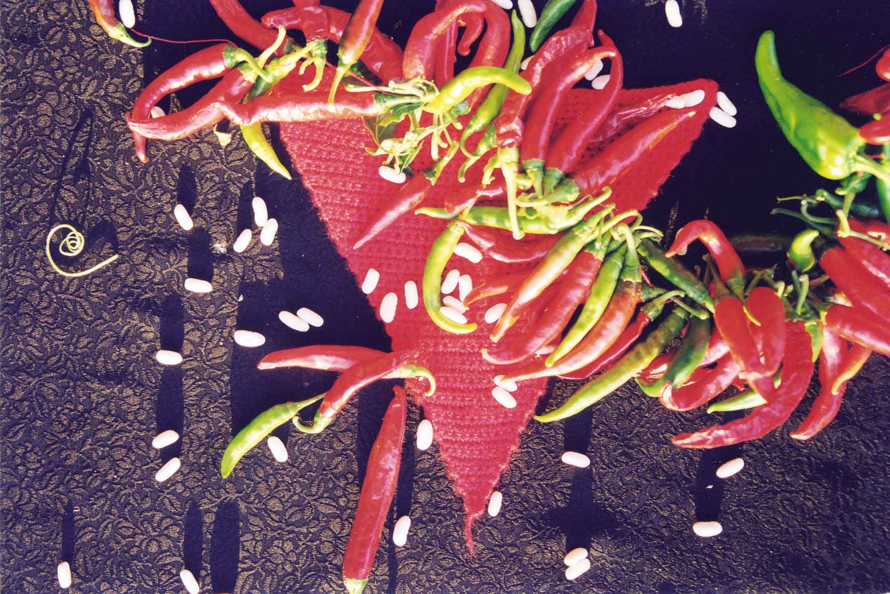 Imaginifica,a Living Sculpture in Textile Art, Land Art,Public Art, Arte Coinvolgente Basilicata, 1-28 agosto 1999 Nella Sala della tessitura sacra Il Triangolo con la punta in giù è l’archetipo che più efficacemente rappresenta la pura energia del Femminile.