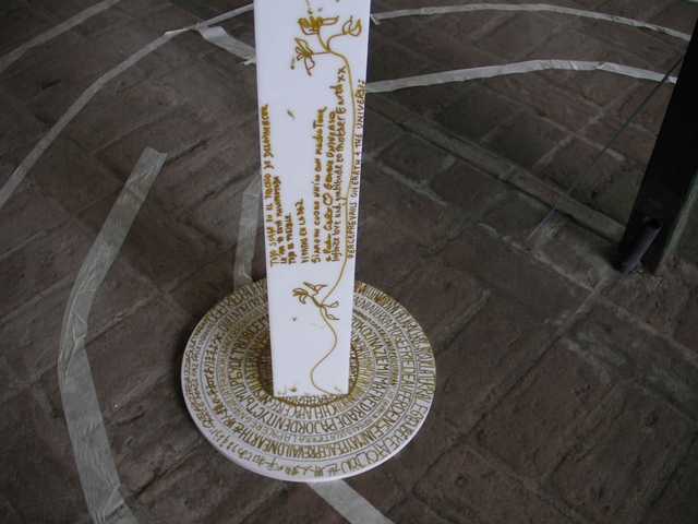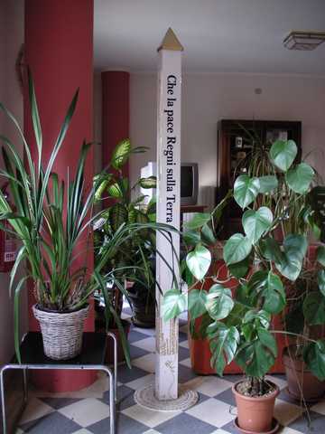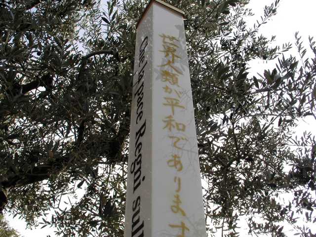 A simboleggiare la possibilità di realizzare la pace è stata posta al centro del luogo della cerimonia una STELE di PACE (PEACE POLE), appositamente portata ad Assisi in rappresentanza della città di Potenza: sulle 4 facce la scritta in nero e oro che la pace regni sulla terra in italiano, inglese, arabo e giapponese, a simboleggiare l'unione tra i popoli. Sulla base della stele, che poggia su una base circolare a forma di mandala, i partecipanti hanno vergato in colore oro una frase che esprimesse il loro anelito alla pace.